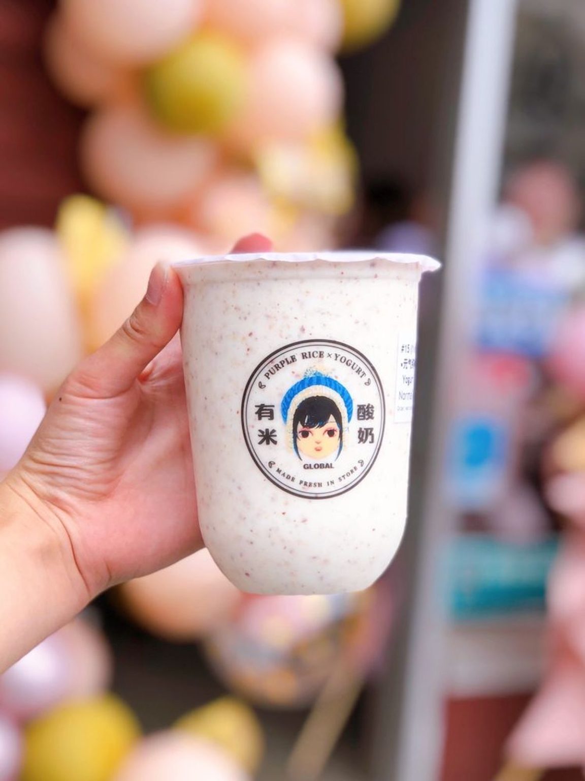 Yomie’s serves smoothie-style beverages made with yogurt and purple rice flavored with healthful ingredients in varieties like Pure Jujube Yogurt, Pure Red Bean Yogurt, and Melon! Melon!