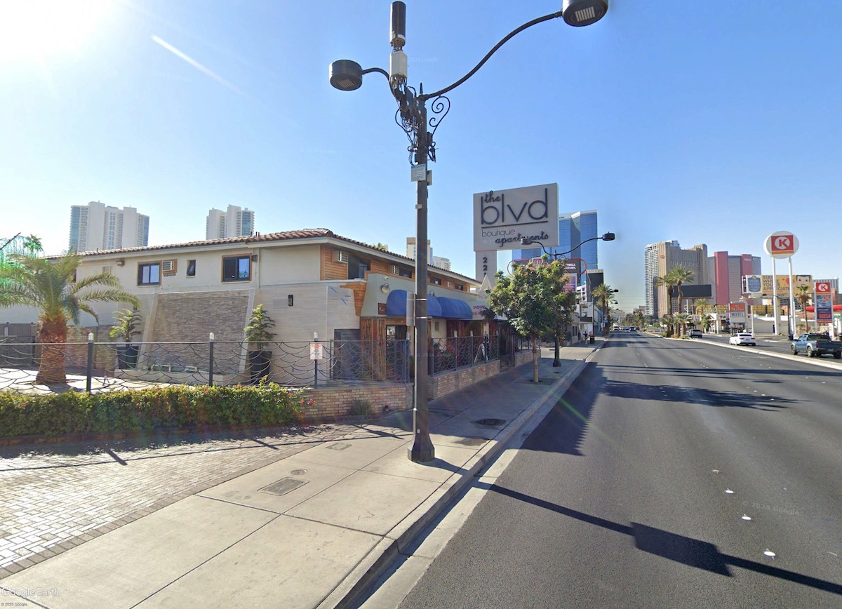 The location sits between the West Cleveland Avenue and West Bob Stupak Avenue intersections, across the street from restaurants like 5 Dollar Cafe and Bar la Luna.