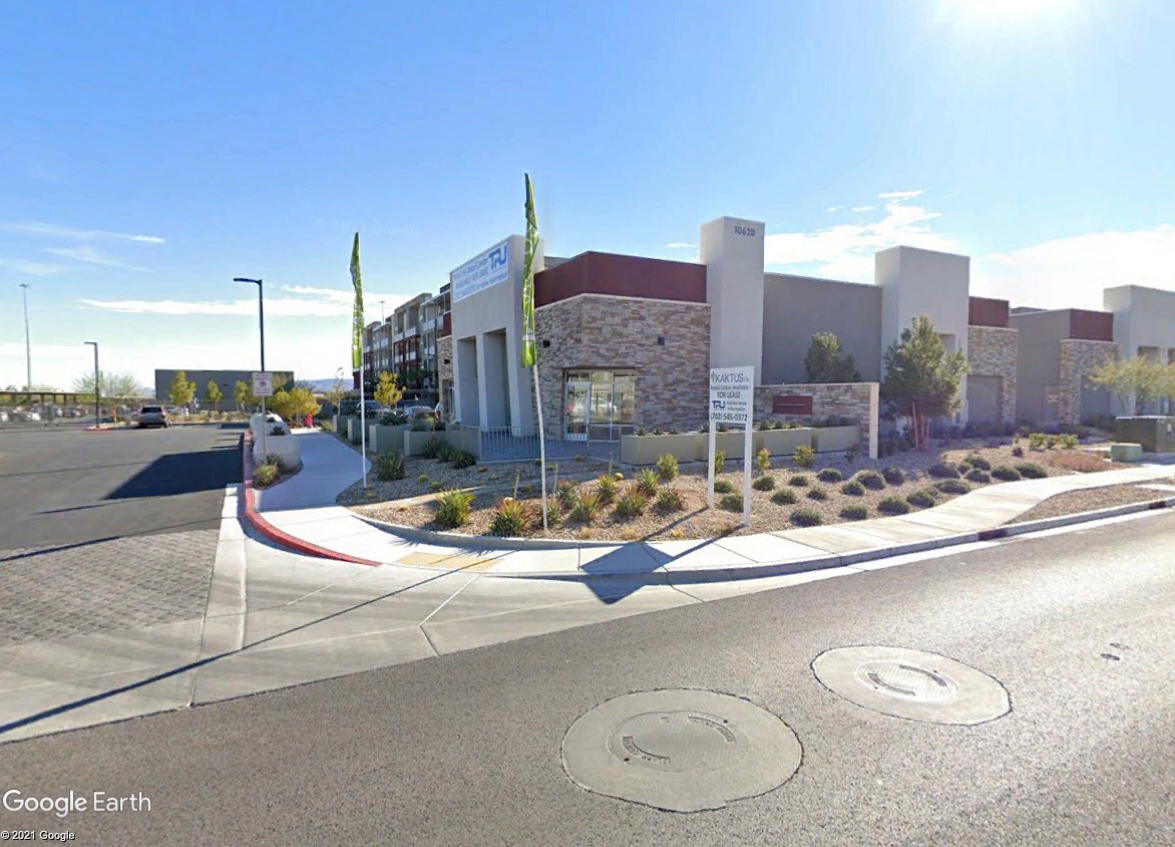 The location at 10620 Dean Martin Dr is in a building not far from the intersection with Cactus Ave, across the street from Volare, a luxury apartment building. Its commercial neighbors include apartment rental agency KAKTUSlife and Life Nail Bar.