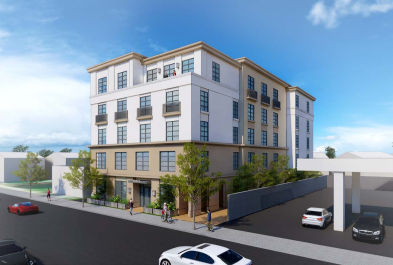 The auto body shop currently on the property would be demolished. 54 of the 55 units in the building would be set aside for low-income tenants.