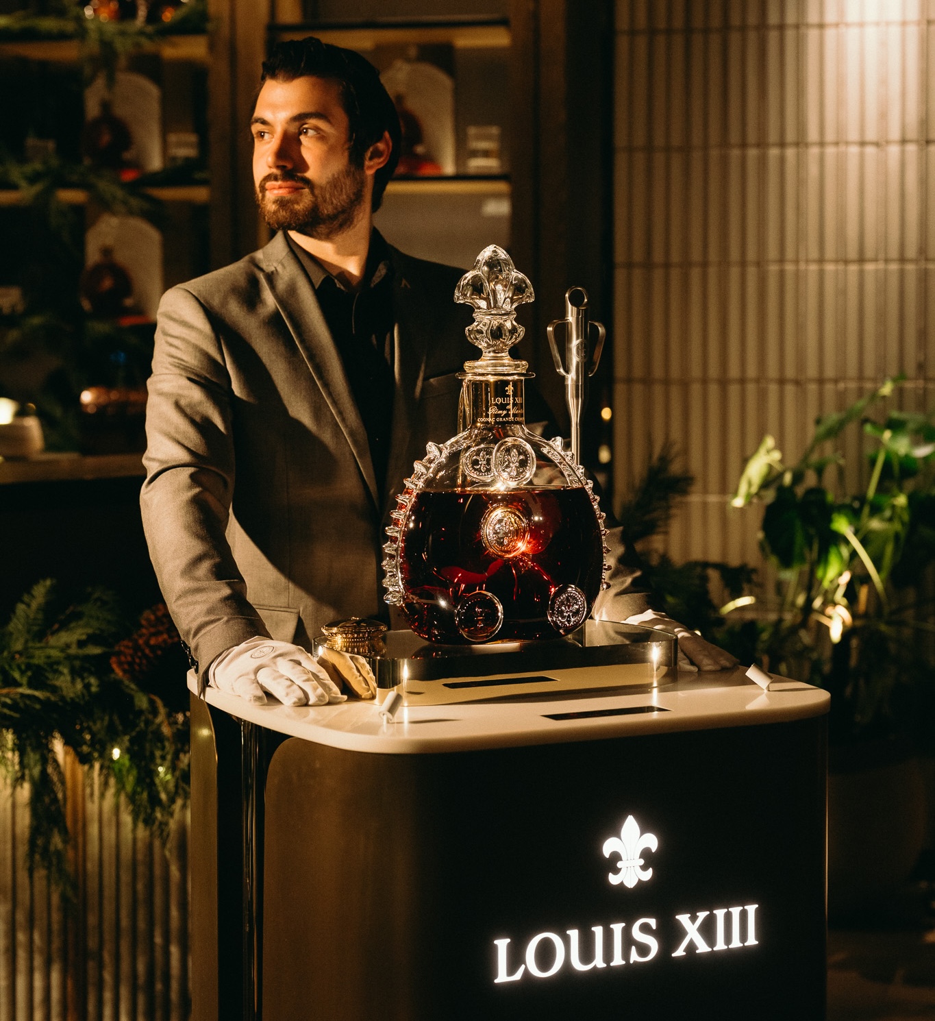 The pour itself arrives through a precision mechanism that draws the exact right measure without a drop wasted — an echo of the pipette the Cellar Master uses to draw eaux-de-vie directly from the barrel in Cognac, France. What’s in the glass is a blend of up to 1,200 different eaux-de-vie, some aged over a century in Limousin oak. Hold the glass at arm’s length first to take in the deep amber and mahogany hues, then bring it slowly toward your nose — light florals, then wood and spice, then preserved fruits and honey. It is, in a very literal sense, time in a glass. LOUIS XIII recommends it as an aperitif before dinner, which makes the sequencing here feel exactly right.