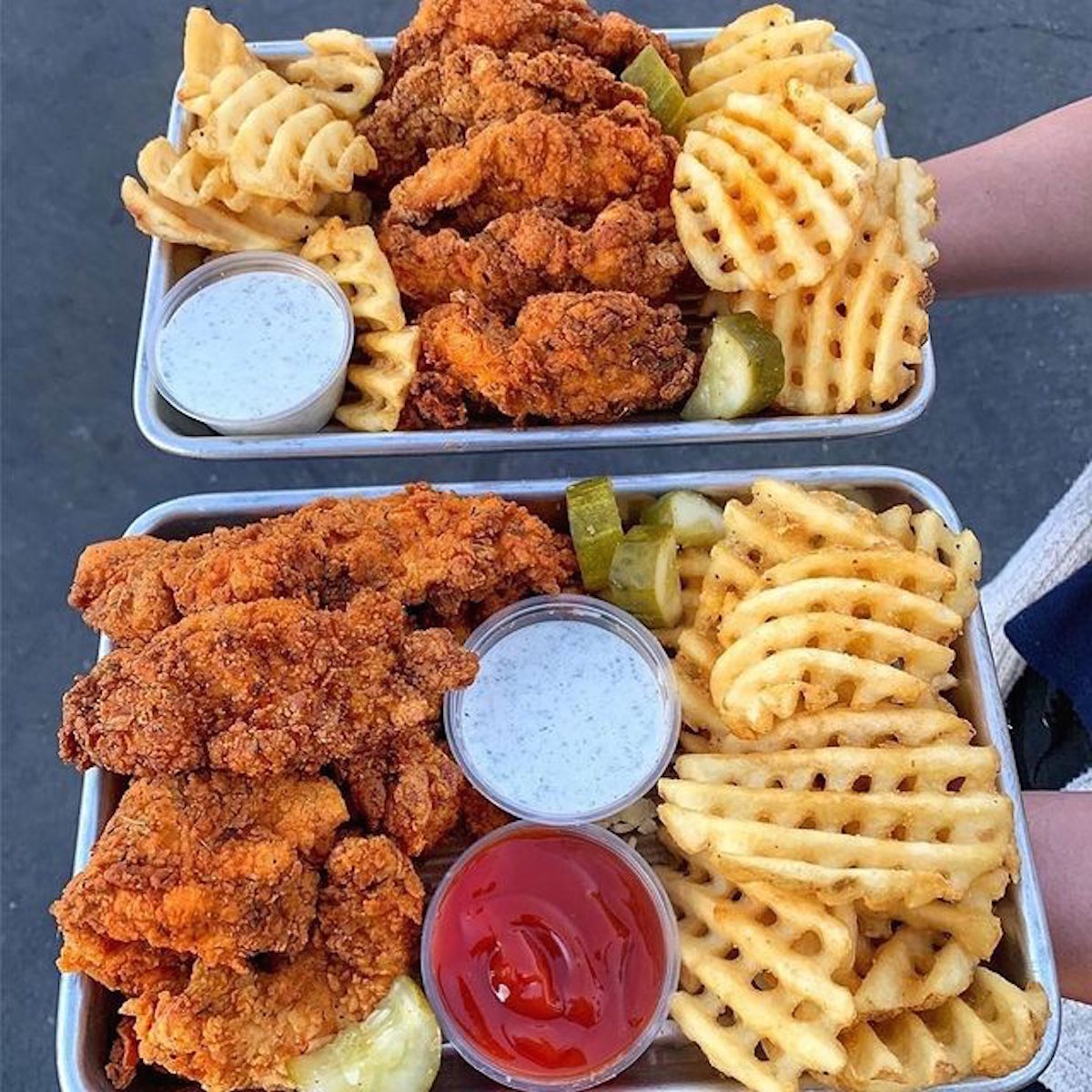 Bruxie features original chicken and waffle sandwiches along with other gourmet waffle and dessert options. Customers can choose from spicy tots and waffle fries and breakfast waffle sandwiches and chicken tenders are also available.