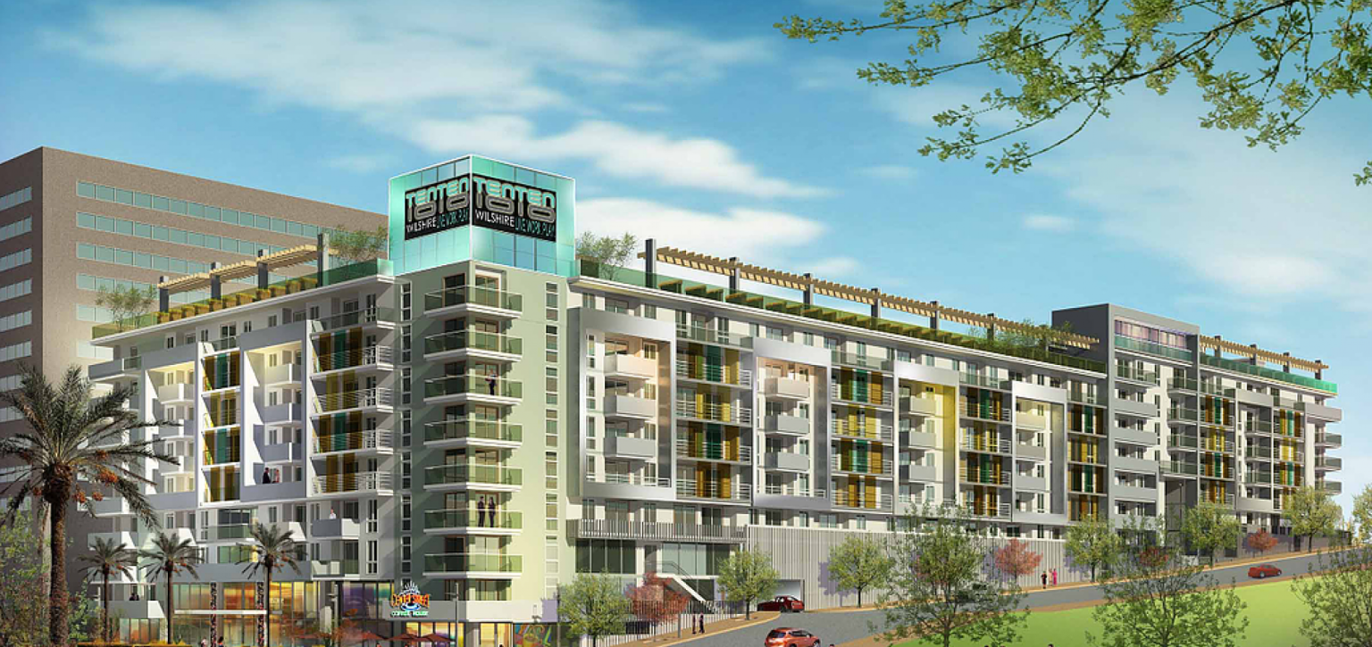 The original TenTen Wilshire, which opened across the street in 2007, repurposed the former 16-story headquarters of the Signal Oil Company as rental housing. The project’s under-construction phase replaces a parking lot.