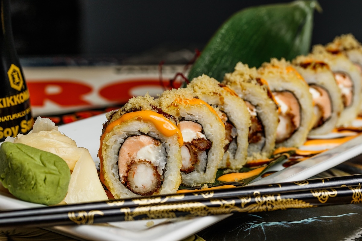 Known for its bold flavors and rock-themed branding, the restaurant’s menu is divided into sections like “Opening Acts,” “Classics,” “Green Room,” “Headliners,” “Kids Rock” and “After Party.” Guests can expect rolls like the Jailhouse Roll, Sweet Home Alabama Roll, Metalhead Roll and Sunset Strip Roll—many of which are fried or baked for an American twist.