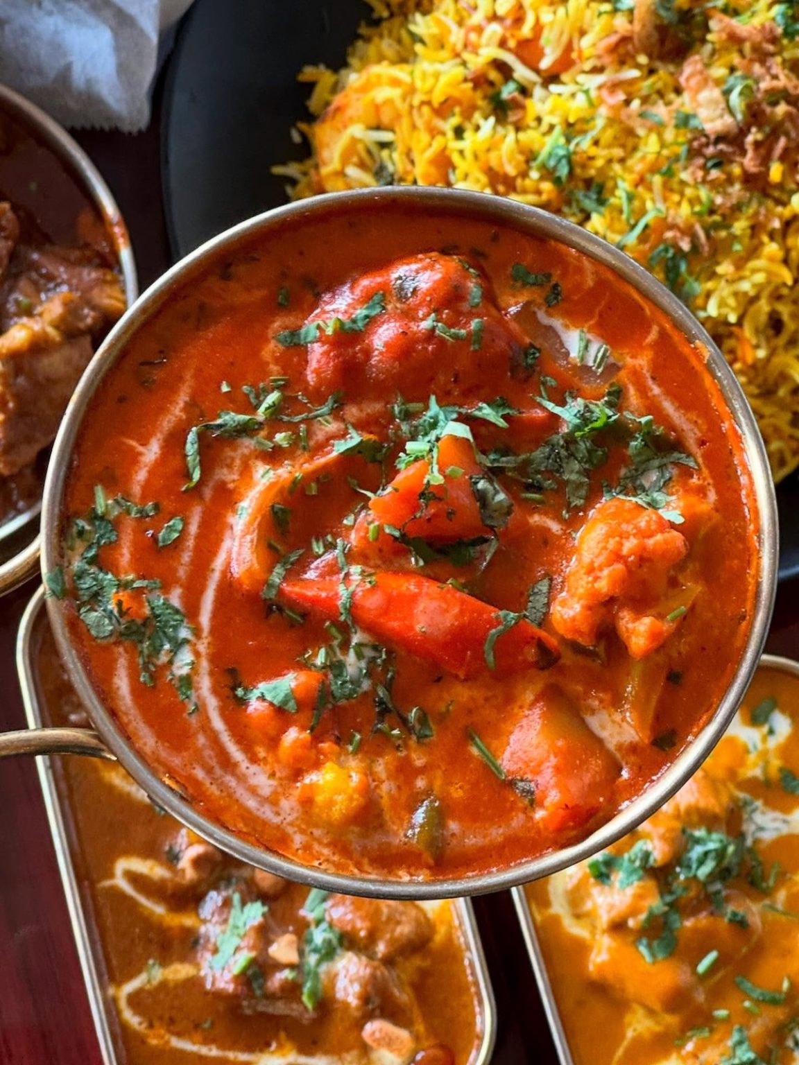 The restaurant’s capacious list of offerings opens with Appetizers like Vegetable Samosa, Paneer Pakora, and Onion Pakora. From there, we move on to Tandoori dishes like Tandoori Chicken and Tandoori Lamb Chops and Biryani with proteins like chicken, shrimp, and lamb.
