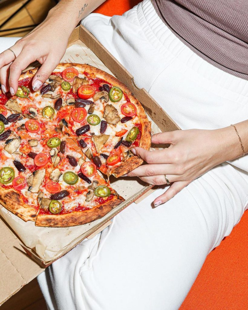 Blaze Pizza offers “fast-fire’d” pies made with never-frozen ingredients. These come in varieties like the Meat Eater, with pepperoni, crumbled meatballs, red onions, mozzarella, and red sauce, and the Hot Link, with Italian sausage, banana peppers, jalapeños, black olives, onions, mozzarella, and spicy red sauce. Vegan and vegetarian pizzas are also available, along with keto-friendly ones.