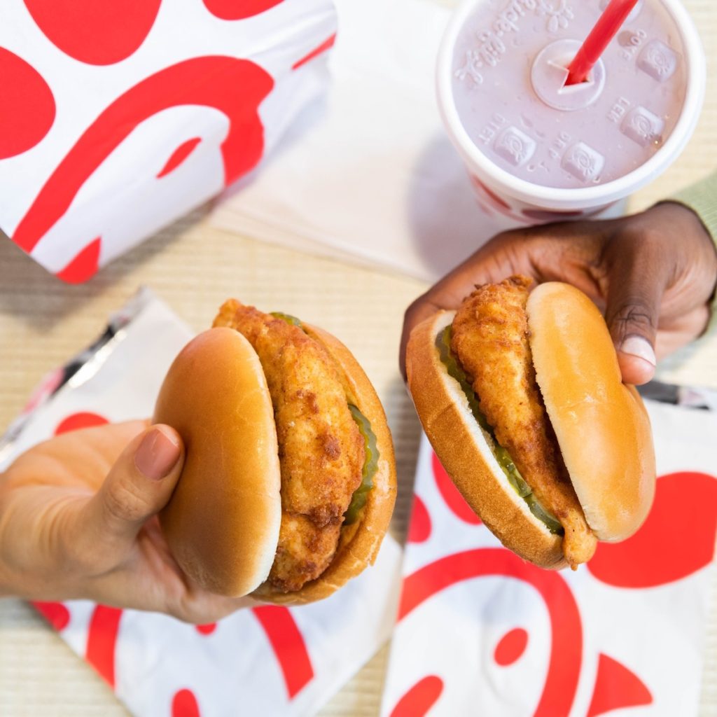 Chick-Fil-A became famous for its Chicken Sandwich—a streamlined combination of breaded chicken, pickles, and bun. A spicy version, along with a deluxe version, which tops the sandwich with cheese, lettuce, and tomato, is also on the menu.
