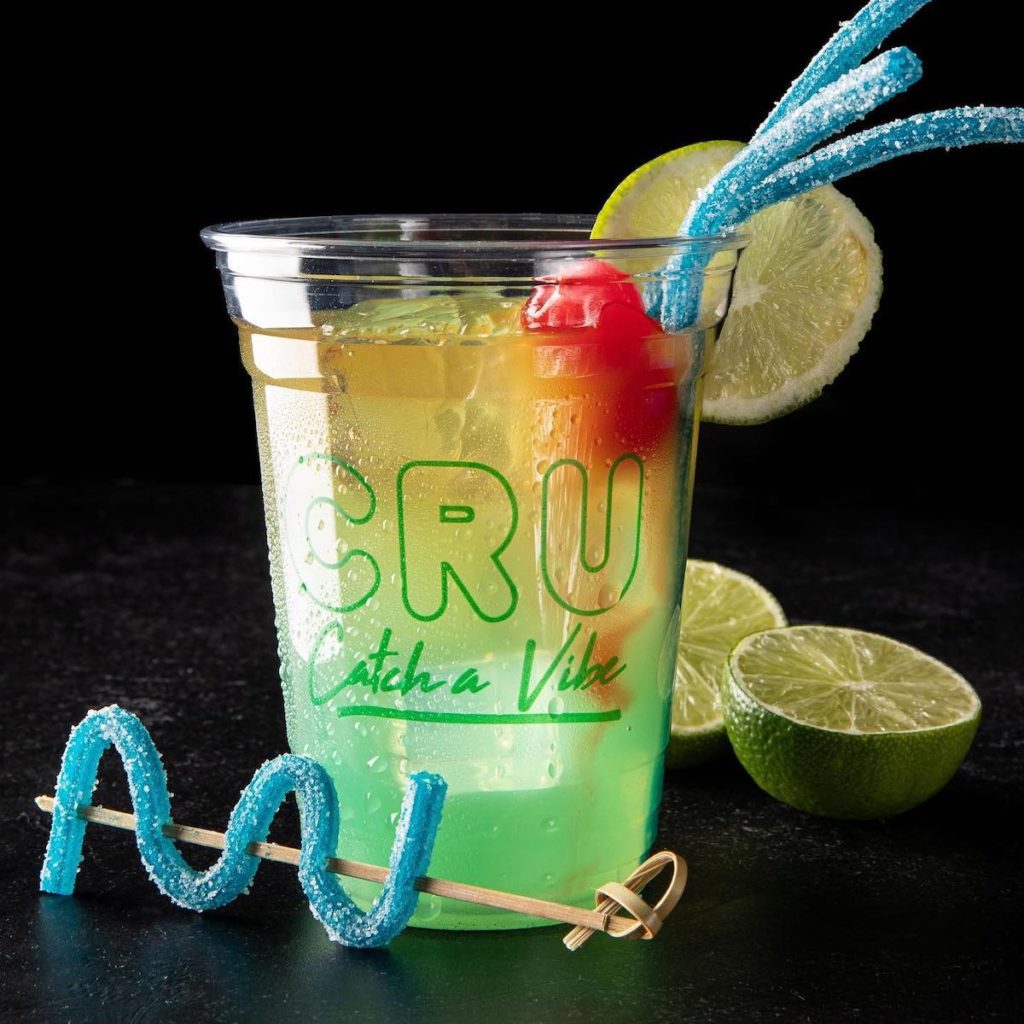 Cru specializes in hookah, offering familiar flavors like Mint and Mango alongside wilder ones like Spiced Chai, Fruity Pebbles, and Cru Lemonade. The lounge also serves up Crutails like Liquid Hemp (coconut rum, spiced rum, melon liqueur, blue curacao, pineapple juice, and sour mix) and Sour Patch Kids (Ketel One Citroen + Cane Sugar, lemon juice, sour mix, and sour patch kids with a sugar rim).