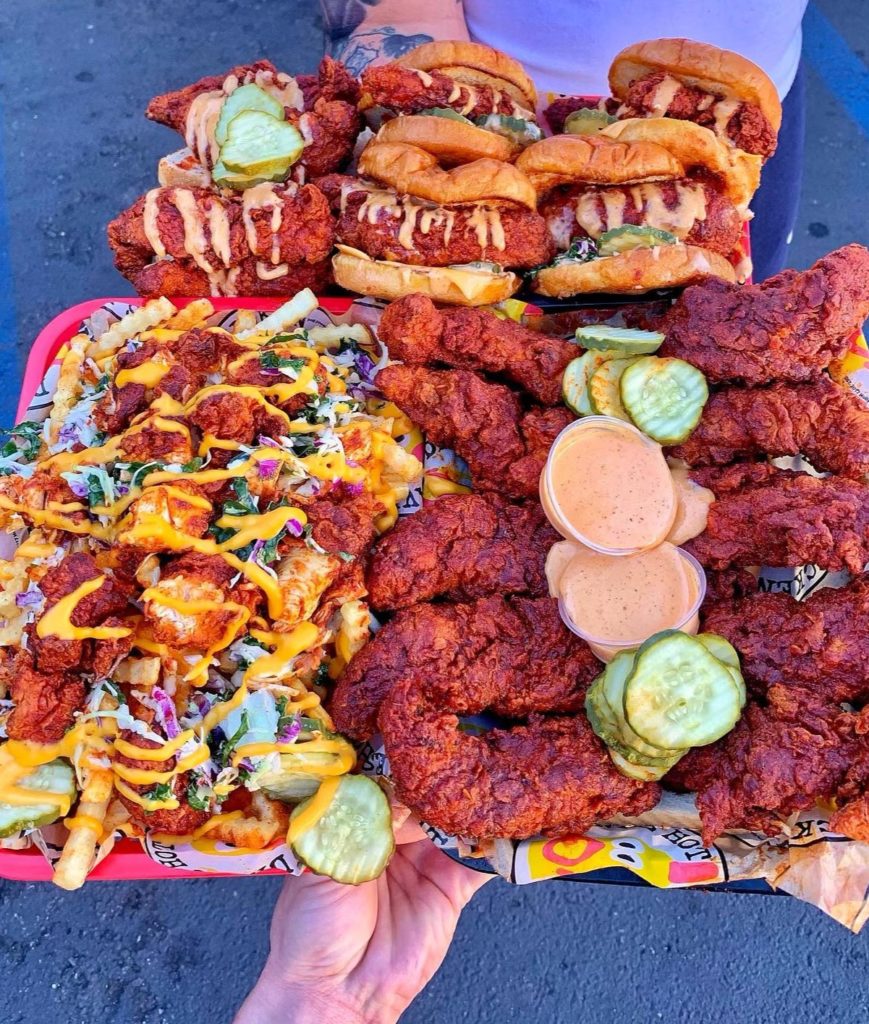 Dave’s Hot Chicken offers chicken in seven levels of heat, with menu items like chicken tenders and sliders. Their online menu shows that they also offer sides like mac & cheese, kale slaw, French fries, cheese fries and milkshakes. Check out some of their delicious offerings on their Instagram and Facebook accounts.