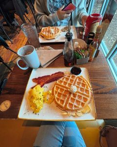 Current Seasonal favorites include Shishito Brisket Hash (Blistered shishito peppers and smoked, hand-pulled brisket in a potato hash, topped with two cage-free eggs any style, house-roasted summer sweet corn, Cheddar and Monterey Jack, house-pickled red onions, scallions, roasted garlic aioli and Maldon sea salt) and Strawberry Tres Leches French Toast (Thick-cut, custard-dipped challah bread griddled and topped with fresh strawberries, sweetened condensed milk, warm dulce de leche, whipped cream and spiced gingerbread cookie crumbles; lightly dusted with powdered cinnamon sugar).