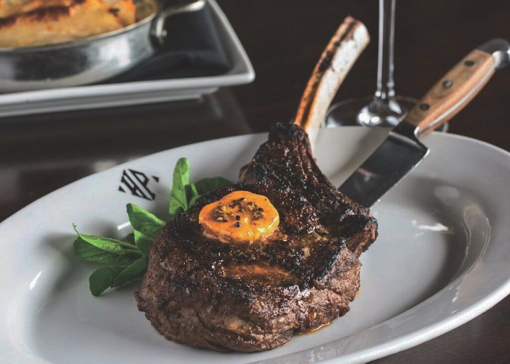 The Sarasota location’s dinner menu opens with raw bar choices like Jumbo Lump Crab Cocktail, Oysters on the Half Shell, and Wagyu Beef Carpaccio. Steaks and Chops include Filet Mignon, a 36 Day Dry-Aged Bone-in Ribeye, a New York Strip Steak, and Double Cut Lamb Chops. Other Seafood choices include Surf & Turf and Lobster Tail.