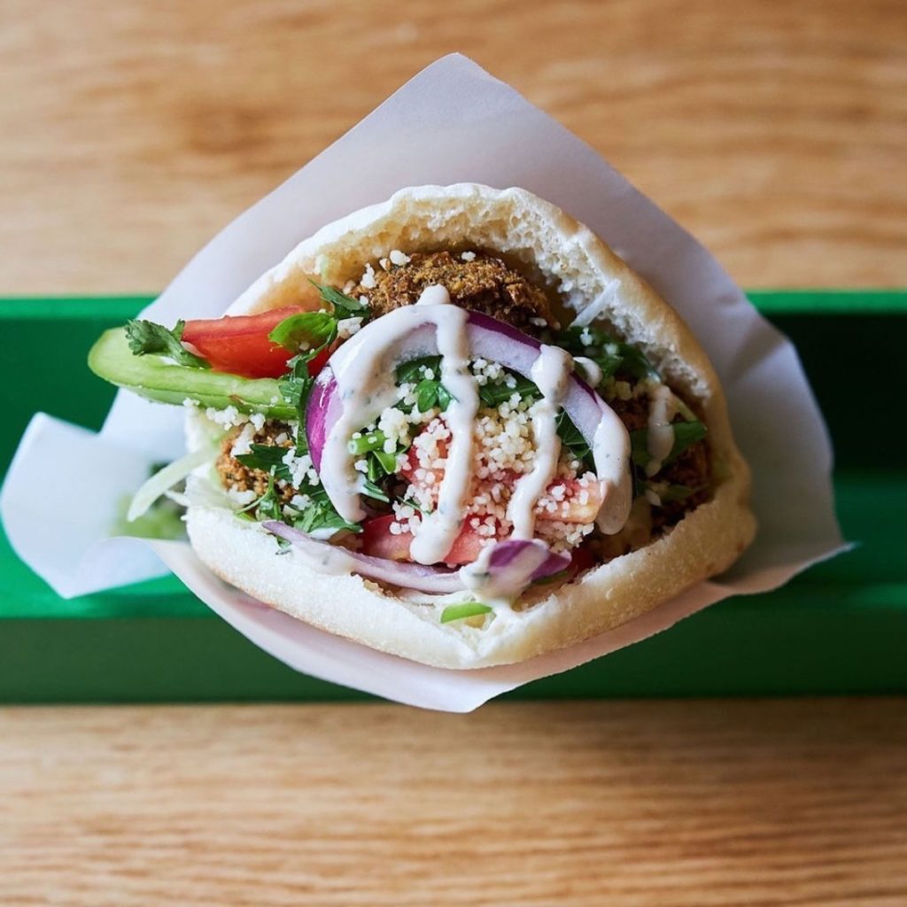 The Maoz menu features customizable hummus bowls, sandwiches, falafel bowls, and salads, with sides that include vegan soups, vegan rice pudding, sweet potato fries, and more. You can also load your order up with extras like hummus, babaganoush, and fried eggplant.