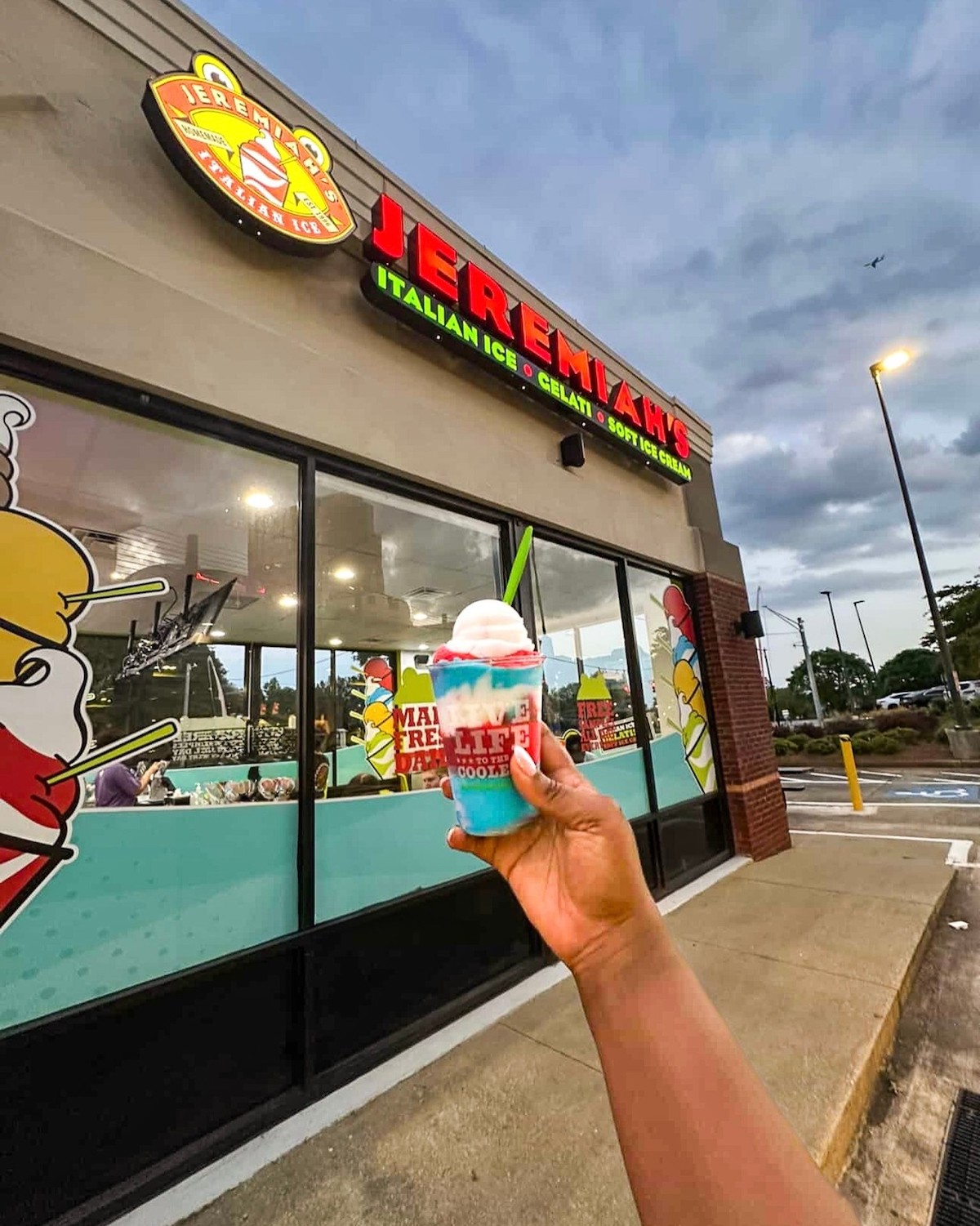 There, guests would be able to enjoy Jeremiah’s wide variety of Italian ice flavors, like Blue Razz, Bahama Freeze (strawberry, lemon, mango, coconut), and Caffè Latte; soft-serve ice cream; and Jeremiah’s famous Jelati, which layer the two together.