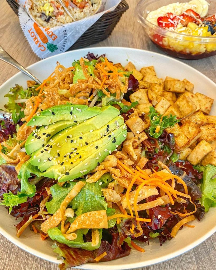 Carrot Express offers a sizable menu of healthy offerings that don’t skimp on flavor. That includes an All-Day Breakfast menu, with choices like the Smoked Salmon Bagel, the Quinoa Breakfast Bowl, and Josh’s Overnight Oats; plus salads, wraps like the Beyond Meat Wrap and the Mahi-Mahi Wrap, and a range of healthy burger choices. Also on offer are acai bowls, stuffed sweet potatoes, Platters like Sesame Crusted Ahi-Tuna, and more.
