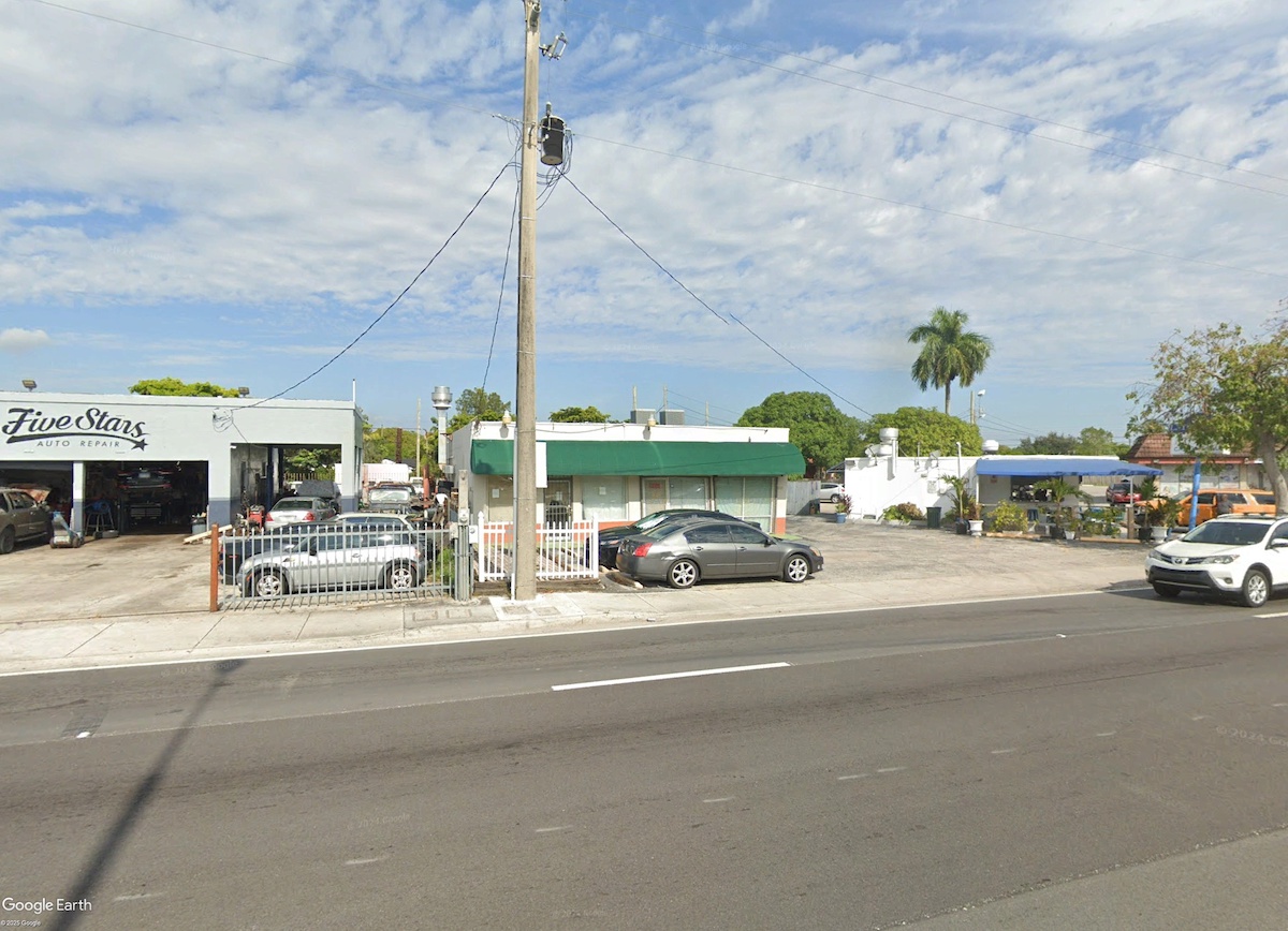 The West Dixie Highway location is situated across from AutoZone Auto Parts, near restaurants like Sunnyside Cafe and Caribbean Zone. Haitian Pentacostal Church is also nearby.