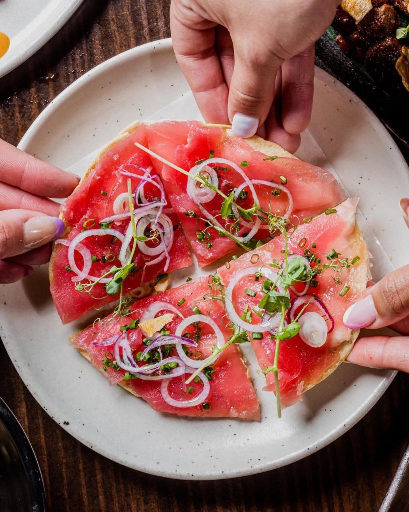 And that’s not even to mention Pubbelly’s sushi, which features a selection of sashimi and nigiri choices, including Bigeye Tuna Sahimi with burrata, heirloom tomatoes, basil ponzu, and olive oil, and Crispy Yellowtail nigiri with black truffle yuzu soy, frites, and chives. Dessert choices include Miso Bread Pudding and Mochi Ice Cream.
