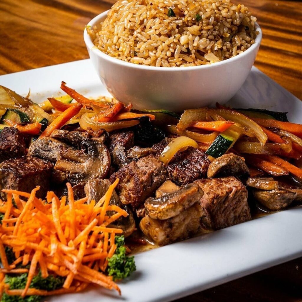 Sushi Sake’s menu’s standouts include the Bobby Salad, “a flavorful explosion of spicy tuna, avocado and crab salad with a touch of sesame seeds and masago,” and the Miami Heat roll, which is “packed with shrimp tempura, cream cheese, crab salad and topped with baked salmon, spicy mayo and eel sauce.” Another popular dish is the Pineapple Fried Rice.