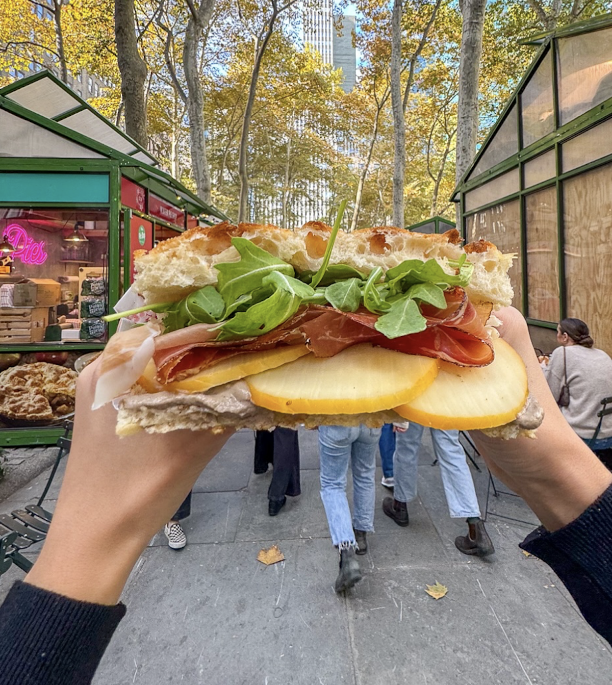 The menu includes unique sandwich offerings like the La Favolosa, which features salame toscana, pecorino cream, artichoke cream and spicy eggplant, and La Dante, which features capocollo, stracchino, truffle cream and arugula.
