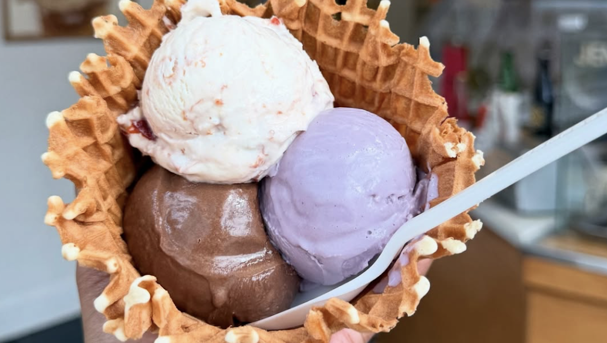 The shop boasts a wide variety of ice cream selections. Flavors include sweet cream, citrus-glazed pound cake, raspberry rhubarb delight, tropical bloom, double dough and green mint crisp. There are also dairy-free and gluten-free menu options.