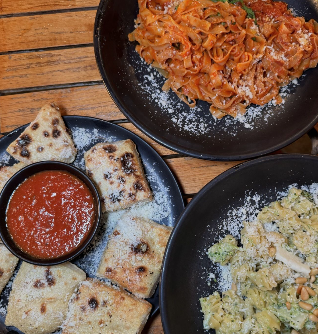 PennePazze, which first opened in Nashville’s L&L Market in 2020, serves pasta and Roman-style pizza, or pinsa, alongside a beverage program offering wine and beer. Menu options include carbonara pasta, ravioli de ragu, pinsa pazza and pinsa funghi.