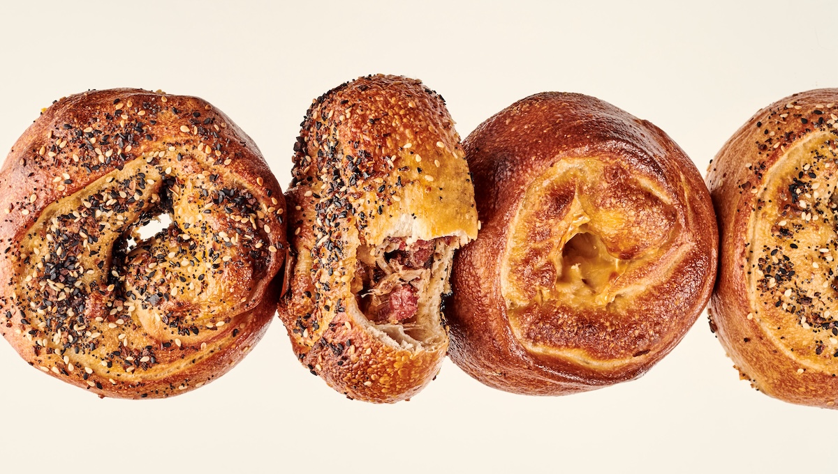 The menu features unique concoctions like a bacon, egg and cheese stuffed bagel; a Buffalo chicken stuffed bagel; and an eggplant parm stuffed bagel.