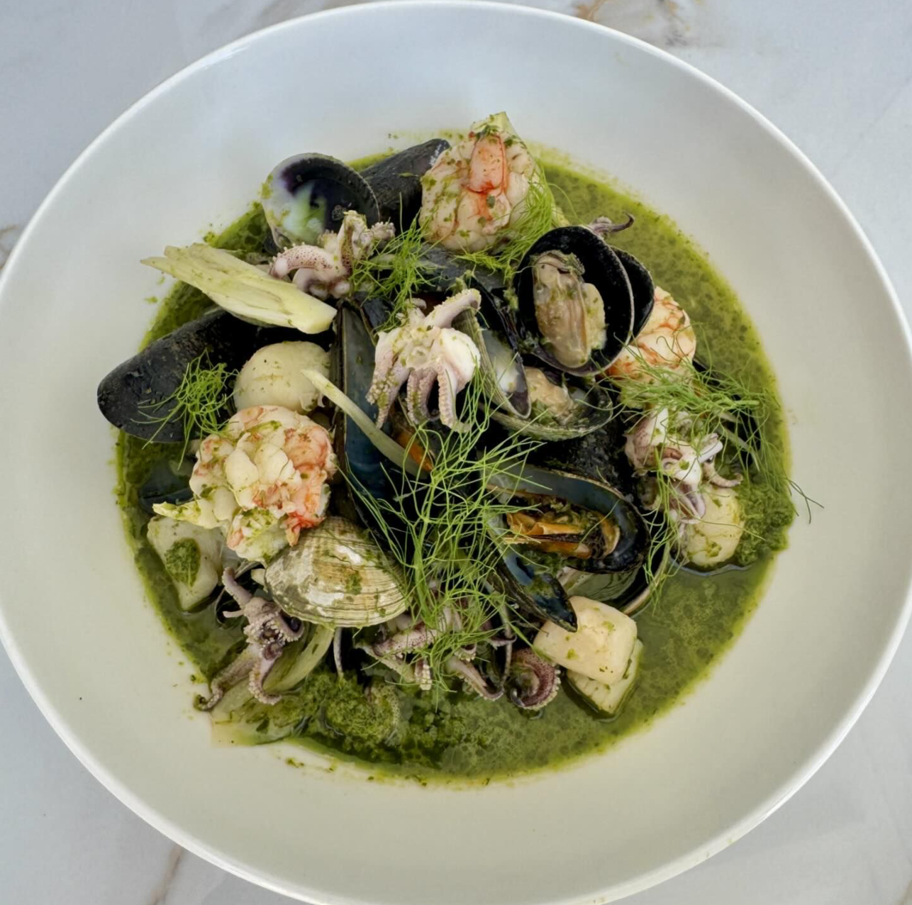 Verde will place a strong emphasis on its beverage program, offering a main restaurant space on the second level of the two-story building and a bar-centered lounge on the lower level. The main restaurant will seat about 70 — including 10 at the bar — and will feature exposed wooden beams, wood flooring and natural light, according to reporting by OCfoodies. The bar level will feature 40 seats and an extensive beverage program, as well as cheese and charcuterie offerings.
