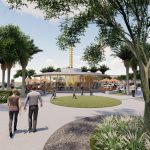 As a whole, Lake Nona Wave Hotel leans in on artistic vibrancy and modern elegance. Current art renderings of the Haven space show the indoor/outdoor restaurant and lounge taking inspiration from tropical plants with furniture in greens, mauves, and floral prints.