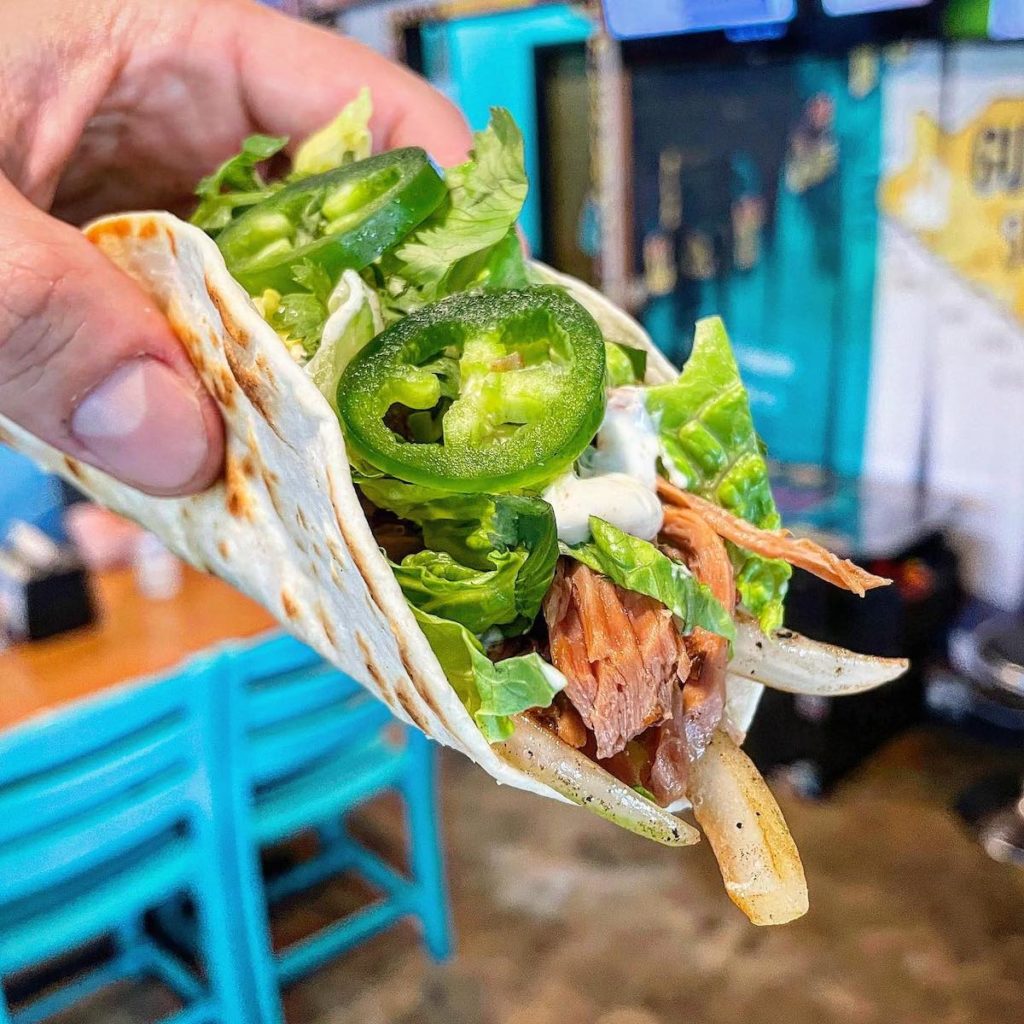 Jimmy Hula’s primarily serves beachy fare such as fish tacos, hamburgers, nachos, poke, salads, and appetizers such as fried avocado and empanadas. The restaurant also offers a brunch menu, a small selection for kids, as well as catering services.