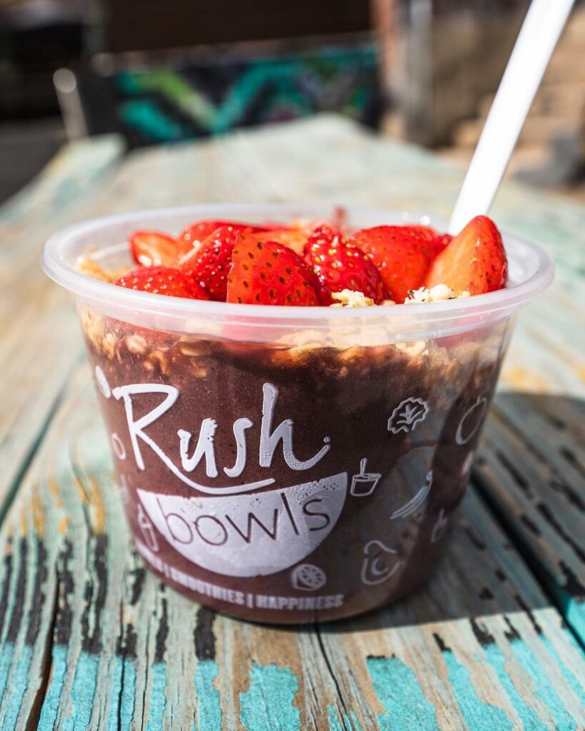 Defining their mission statement on the official website, Rush Bowls states “Here at Rush Bowls our tireless devotion to honest, healthy ingredients crafted in ways that taste sinfully delicious, result in the best fruit and all-natural food bowls available. Anywhere. Period.”