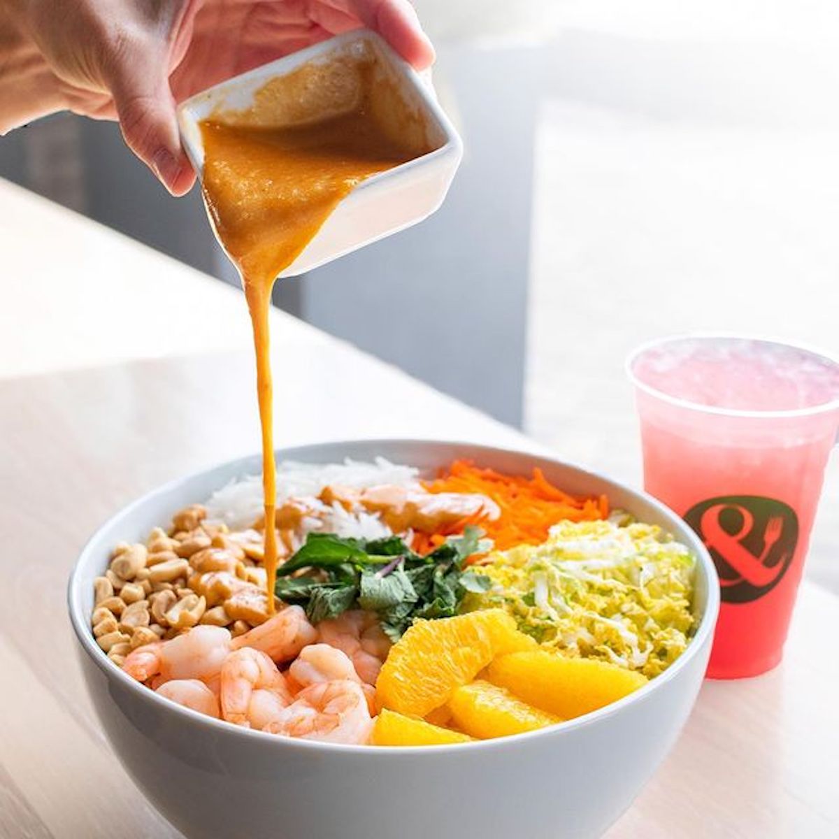 Crisp & Green offers a variety of specialty salads as menu options as well as build-your-own options. Some of the specialty salads include “Hearts of Palm Beach” with “mixed greens, arugula, citrus shrimp, hearts of palm, tomatoes, quinoa, haricot vert, pepitas and dijon-ancho vinaigrette”, or “Thai and Stop Me” with “arugula, mixed greens, citrus shrimp, orange slices, daikon radish, napa cabbage, carrot, basil, mint, cilantro, peanuts, lime squeeze, and thai peanut dressing.”