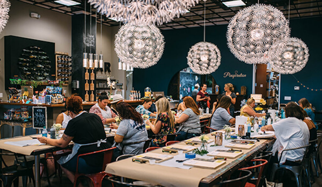 Featuring various DIY craft projects and canvas painting, the brand’s business model capitalizes on the popularity of the Pinterest website and crafting craze it sparked. Guests are provided with all of the materials necessary to create something from an ever-changing lineup of predesigned crafts like candle dipping or fairy houses, or to bring their own ideas to life.