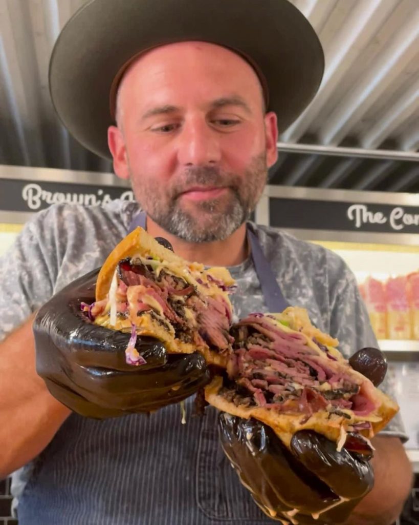 Dalewitz said, in a press statement about Borscht Belt Delicatessen, “The Borscht Belt Delicatessen represents everything my family, along with many other Jewish families loved about their summers in The Catskills: community, family, celebrations, entertainment, and unbeatable NY-style Jewish cuisine. Our idea with The Borscht Belt is to resurrect those memories while paying homage to both Jewish culture and all the iconic New York delis and bagel shops we’ve always loved.” The restaurant is also a family affair, even his daughters help wrap pickles for the deli’s sandwiches.