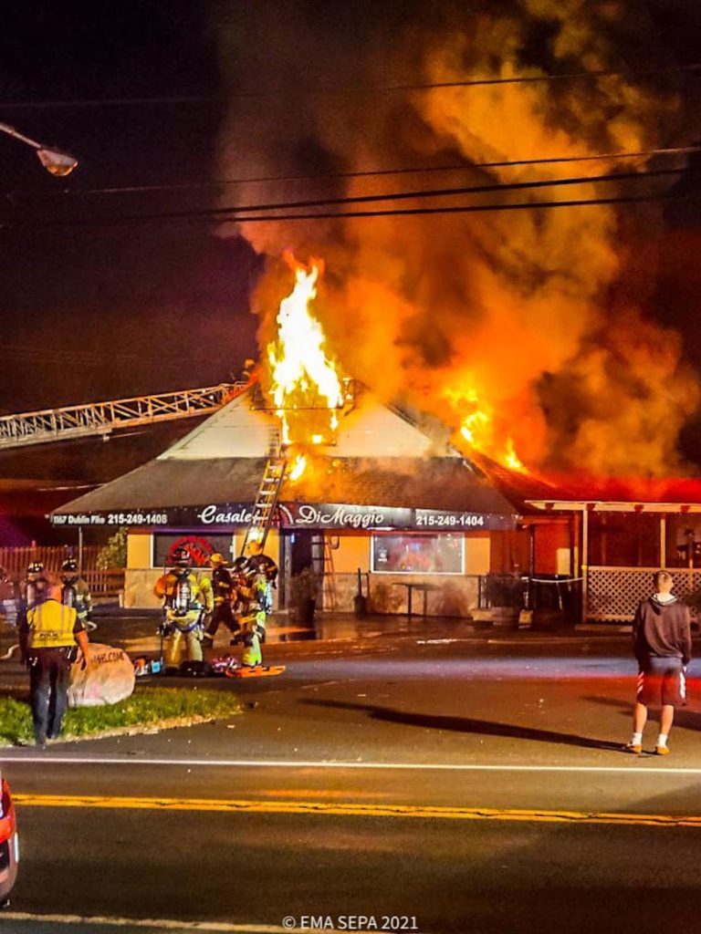 Owners of Casale DiMaggio Sicilian Restaurant will rebuild their restaurant after it was ravaged by a fire on Oct. 20. The fire started at the Bucks County restaurant, located at 1167 Dublin Pike in Perkasie, after closing time at 9 p.m. NBC Philadelphia reported that firefighters arrived on the scene at 11 pm. to find flames spewing from the roof. Local firefighters were joined by other departments from upper Bucks County to fight the fire, which they were able to bring under control after about an hour. Thankfully, no one was hurt in the blaze though the restaurant was left with significant damage.