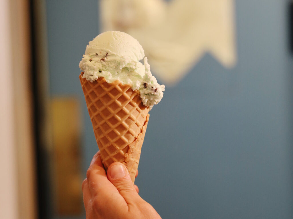 For his first location, Cloud Cups has brought his signature cart right into the store where Little Baby’s Ice Cream was formerly located. The space was fitted out and the kitchen space behind will allow for expanded menu items – including the new Cloud-ninis. Cloud Cups first connected with Pizza Brain when Cloud Cup used the space temporarily to produce gelato at the start of the pandemic until Cloud Cups secured a larger permanent commissary kitchen. Cloud Cups also partnered with Pizza Brain to host special events and pop-ups, including speakeasy pop-up nights in the back courtyard. After demand from those events, Pizza Brain and Cloud Cups installed a case for gelato pints to go – and the next natural progression was partnering on the scoop shop in the unused space/building next to Pizza Brain that connects on the inside through the shared dining room.