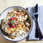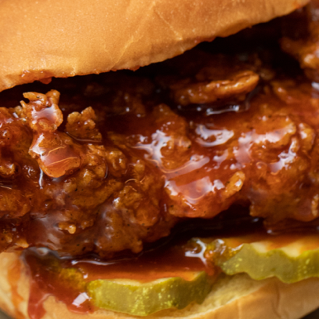 Fuku’s specialty sando includes a crispy Habanero-brined chicken breast, Fuku mayo, and a pickle all atop a Martin’s Potato Roll. You can also make it a meal with “sweet jalapeño seasoned waffle fries, a side of pickles, two Fuku sauces, and a drink.”