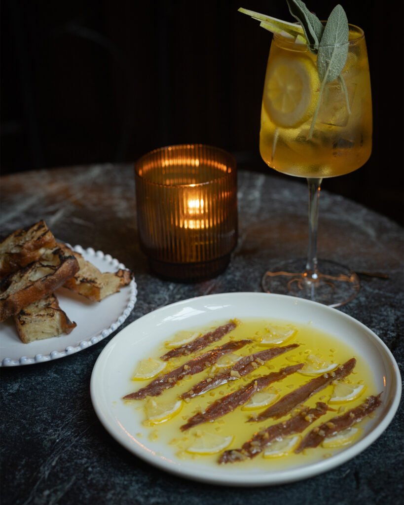 “Caletta offers snacks inspired by Sardinia and southern Italy with luxe touches like truffles and caviar, standing in contrast to the more traditional and proletarian Sardinian and Corsican influences found next door in Bastia,” says Chef-Partner Tyler Akin in a statement. “Whether Caletta itself is the destination, a place to warm up for a meal at Bastia, or the most convenient bar to enjoy a cocktail after a meal across the hallway, Caletta can be so many things to our hotel guests and to the community. In any case, it will be delicious, creative, and seasonal. Our local farm deliveries will very much inform both the food and drink,” Akin continued.