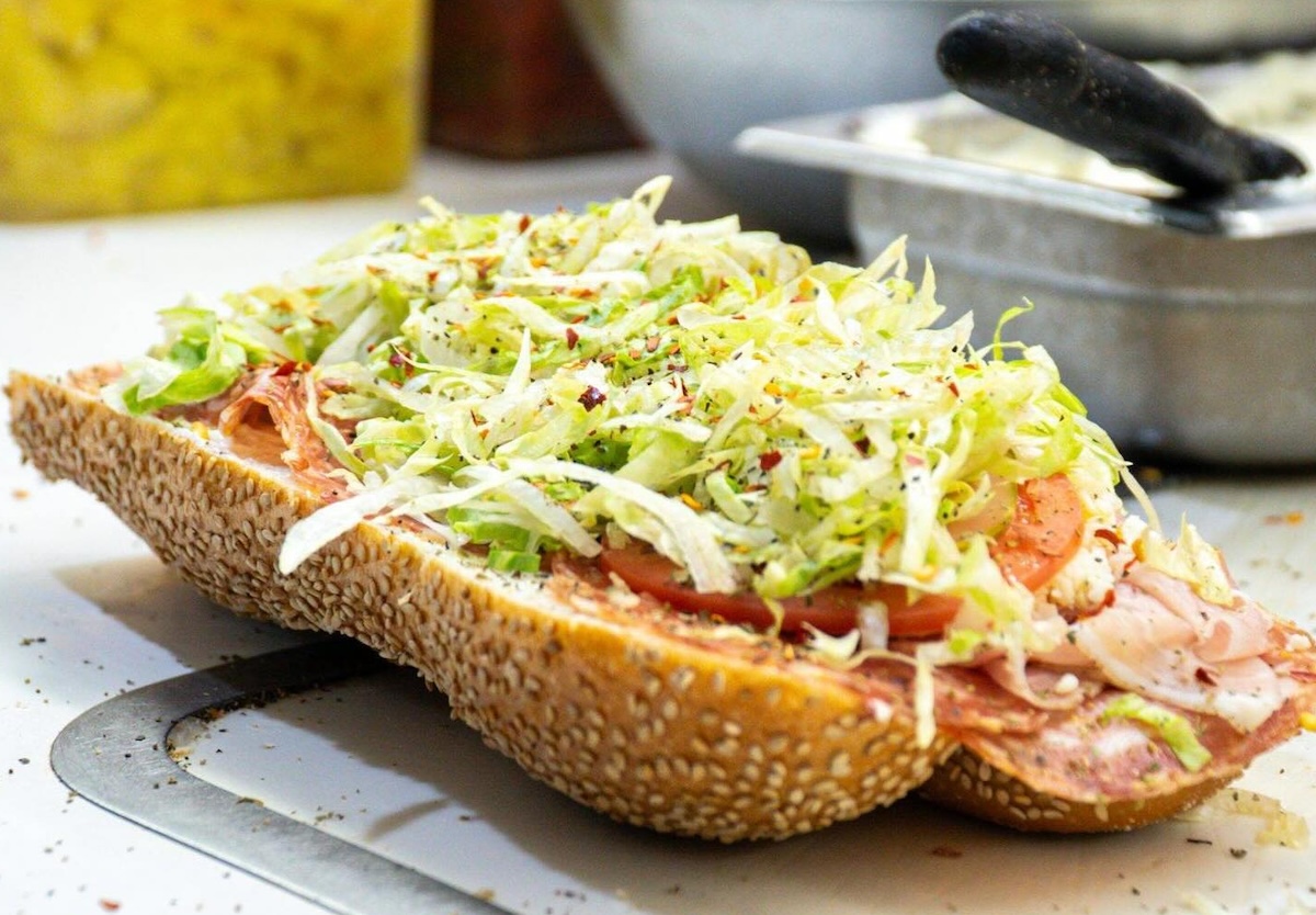 “We’re always known for our old-fashioned Italian hoagie. I think nobody does what we do with our sharp provolone—the way we cut it, chop it up, it basically becomes granular, and then we spread it across the meat on top with some roasted peppers,” Pagliarella said.