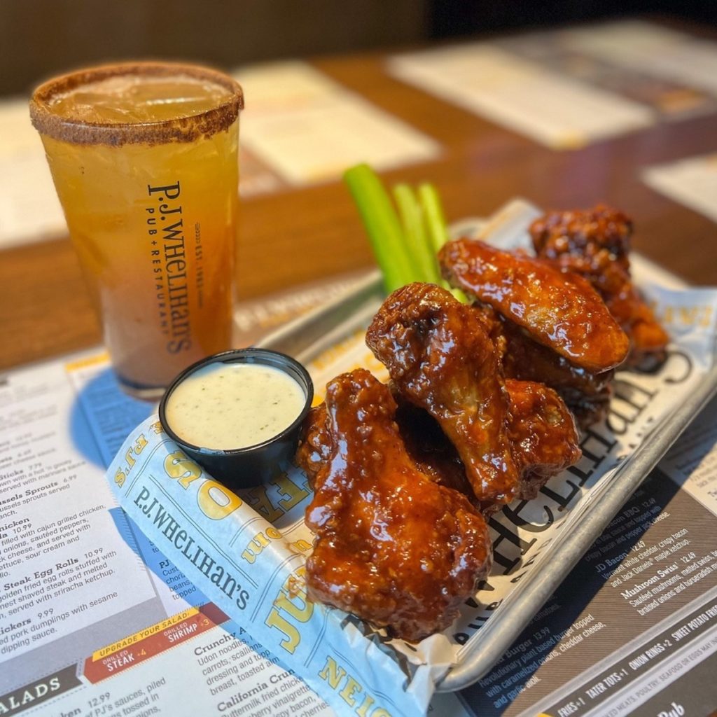 Needless to say, over the years P.J. Whelihan’s has become synonymous with classic comfort food and pub grub, and perhaps most notably, chicken wings, which come with a variety of signature sauces including Mango Habanero, Garlic Parm, a rotating wing of the month, and the infamous Inferno. Meanwhile, there’s a reliable menu of burgers, seasonal specials, fried goodies like onion rings and tater tots, salads, chilis, nachos, and mains such as PJ’s Pub Steak, Twin Crab Cakes, Fire-Grilled Salmon, and more, all of which can be washed down with the restaurant’s house beer, the PJW Copper Lager, brewed in collaboration with Victory Brewing Company.