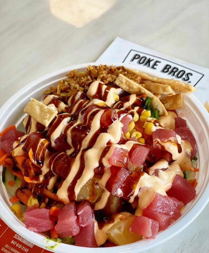 The founders of Poké Bros. discovered poké bowls, which originate from Hawaii, during a trip to California. They started their company in 2016 by putting their own stamp on poké bowl recipes. Poké Bros. offers signature bowls, like the Johnny Utah with salmon, avocado edamame, cucumber, masago, OG sauce, and sriracha aioli, or build-your-own bowls. They also serve mochi ice cream.