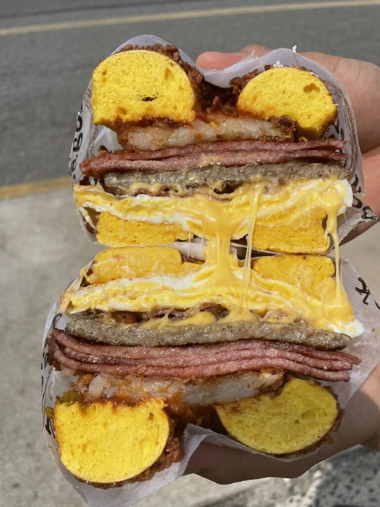 The Bagel Nook established itself as a carbohydrate force to be reckoned with by adding unusual mix-ins to its dough. Adventurous customers can enjoy everything from a Fruity Pebbles bagel to the Flaming Hot Cheetos Overload. The Bagel Nook knows no bagel is complete without a proper schmear and offers unexpected cream cheese varieties like salted caramel chocolate chip, birthday cake, and bacon cheddar. The restaurant serves omelets, breakfast sandwiches, and pancakes for its bagel-averse guests.