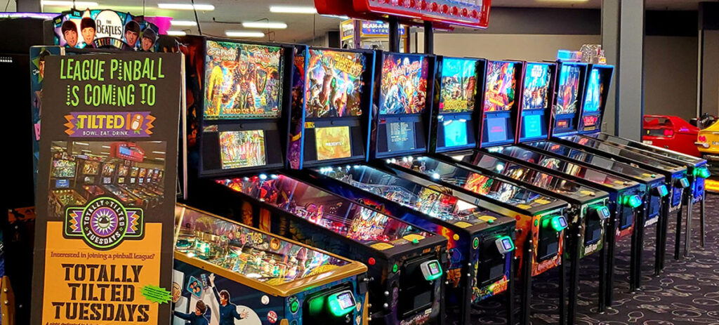Now, guests can fully experience so much more from Titled 10. First in the region, Tilted 10 offers 16 full bowling lanes with a VIP bowling lounge, over 150 video, pinball, redemption, and prize games; a blacklight laser tag arena; two 18-hole themed blacklight golf courses; a shooting gallery; mini bowling lanes; and a bumper car rink – the Spin & Flip Zone.