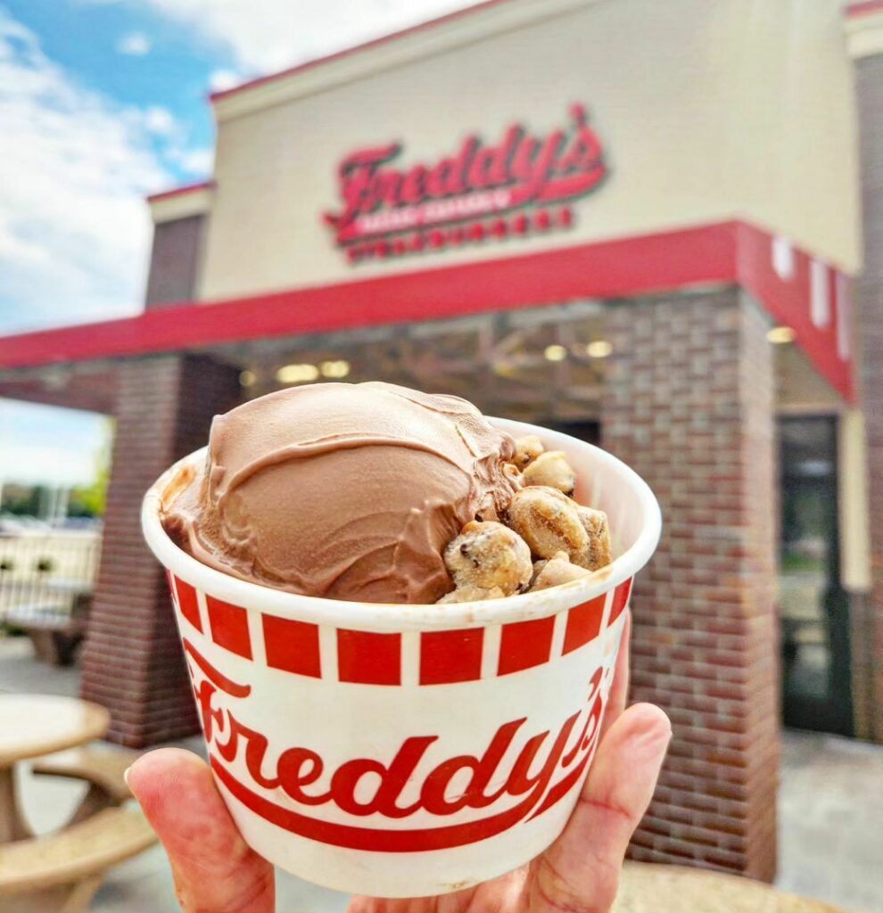 According to their website, some Freddy’s favorites from the menu include cheese curds, signature turtle frozen custard, Freddy’s original double combo, dirt n worms frozen custard, jalapeno pepper jack steakburger, and shakes & malts. Their website also shares the following: “Freddy’s Frozen Custard & Steakburgers® was co-founded in 2002 by brothers Bill and Randy Simon with their friend and business partner, Scott Redler. It was named in honor of Bill and Randy’s father. Together, they built a brand focused on quality, hospitality, cleanliness and timeless traditions. Today, our Freddy’s Family creates fresh, made-to-order, craveable food, served to our guests with genuine hospitality in a fun, inclusive environment.”