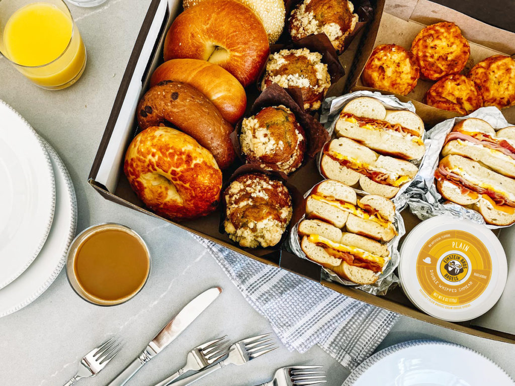 Einstein Bros. Bagels is the nation’s neighborhood bagel shop. Serving more than 20 varieties of bagels that are baked fresh every day, along with several different types of shmear, Einstein Bros. Bagels is a popular option for on-the-go breakfast and lunch.