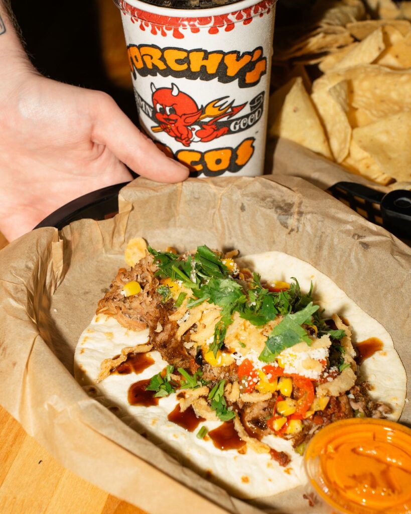 Their menu includes tacos and bowls, with sides like chips and queso, street corn, refried beans, and rice, as well as a happy hour. They also have a special “Taco of the Month” promotion, and desserts include scratch-made churros made with buttermilk and dusted with sugar and cinnamon with a side of dulce de leche, and “lil’ nookies,” which are fried chocolate chip cookie dough topped with cherries.