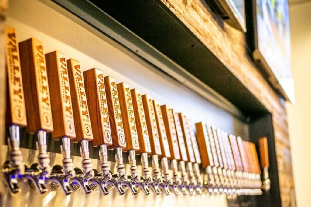 Valley Taproom offers a wide variety of craft beers, ranging from pilsners to porters. Some breweries carried by the company include national brands such as AleSmith Brewing, Stone Brewing, and Pariah Brewing, as well as local brands, including HELLUVA Brewing, Dark Sky Brewing, Throne Brewing, and Walter Station. The taproom also offers a dozen red and white wines, available in a glass or bottle.