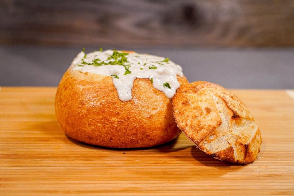 The menu includes sandwiches made with premium quality meats, artisan cheeses and fresh cut veggies, plus a variety of classic salads served with a side of their sourdough bread. There is also New England Clam Chowder and a rotating soup of the day served in a fresh sourdough bread bowl.