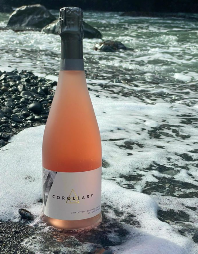 According to the Corollary Wines company website, “We founded Corollary Wines with a singular mission: to explore the terroir of Oregon’s Willamette Valley and its expression in sparkling wine. But our path to winemaking wasn’t exactly a straight line. We started learning about sparkling wine the traditional way—by drinking a lot of it. (#truth.)”