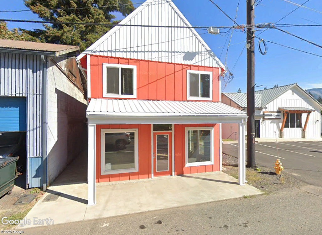 Carson is about an hour east of Portland, and bars and restaurants near Two Fish are Bungalow Bar and Grill and Backwoods Brewing Company. This space and Carson Art Garage are at the corner of Wind River Highway and Hot Springs Avenue. This is the downtown area, surrounded by residential units.