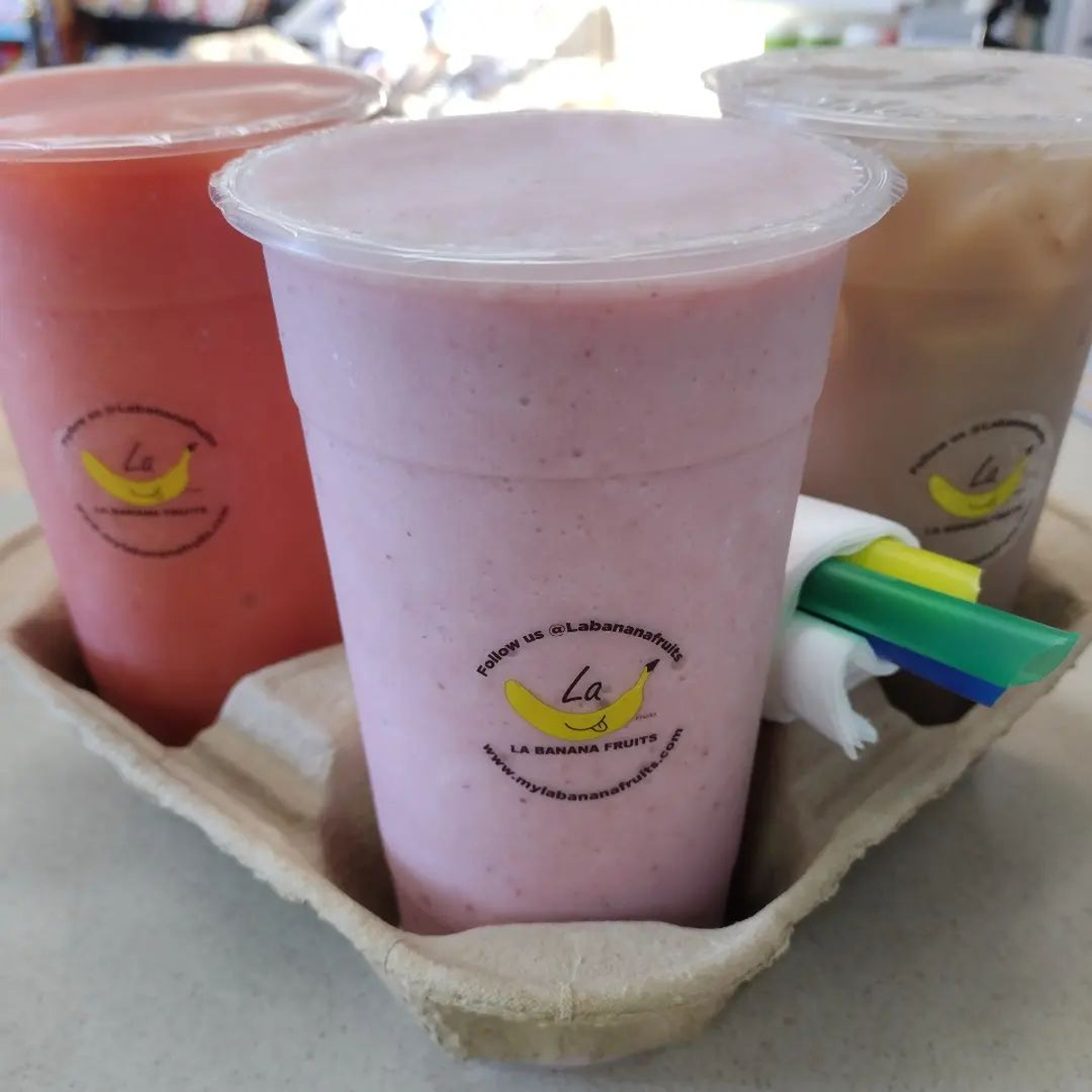 La Banana Fruits serves smoothies, house made lemonades and fruit-infused waters, coffee drinks and fraps, signature tortas, and acai bowls.