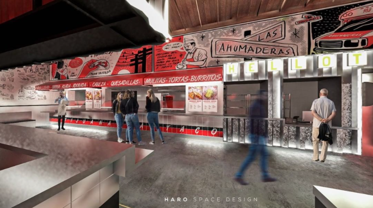 Renderings of the new location by Haro Space Design show a layout that features multiple options for counter service and stylish artwork that set the scene. The location will feature food by Chula Vista neighbors Taqueria El Poblano and Hellote.